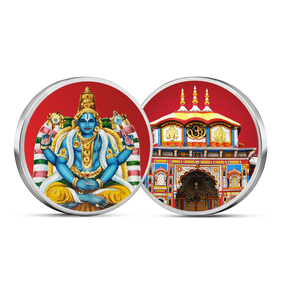 MOHUR Badrinath Temple 10 Gm Silver Coin Coloured (999) Pure Silver
